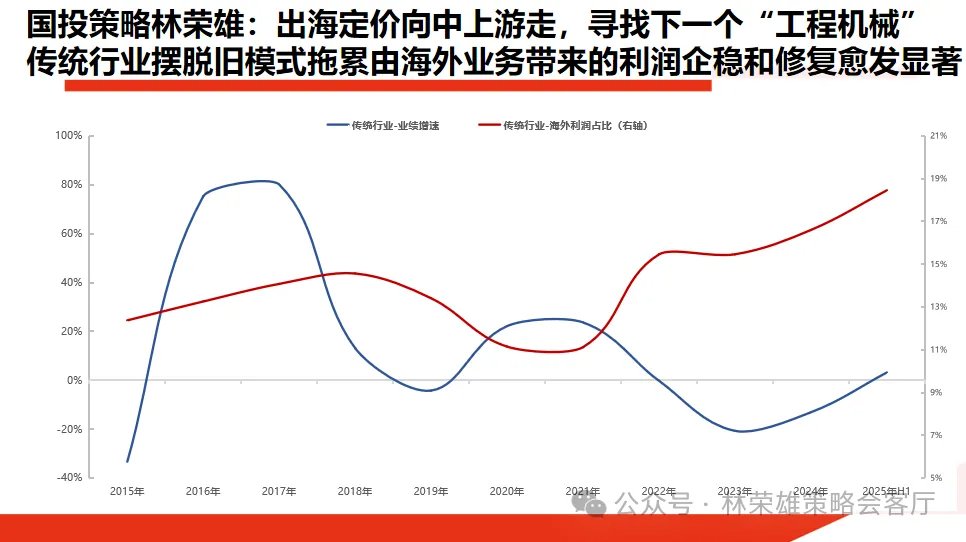 2、”旧”指的就是越来越多传统行业摆脱旧模式拖累由向高端科技制造业靠拢或者海外业务提升带来的新动能实现利润企稳和增长愈发显著,面向2026年这种积极转变将在中上游领域获得Beta定价,对应寻找2025年工程机械是最佳投资逻辑,对应我们自Q4以来反复强调的出海+低位顺周期(含全球定价资源品,有色(贵金属和工业金属)、化工、工程机械、电力设备、建材)。