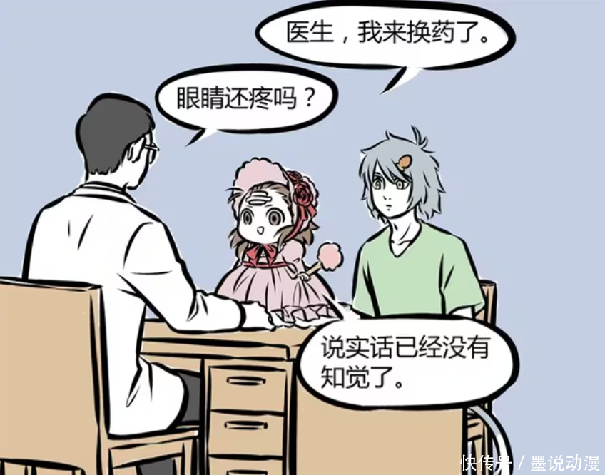 杨戬缩小好几天之后,哮天带着他去换药。此时杨戬还穿着小玉给他定制的衣服,看起来还是有点可爱。医生问杨戬,那只眼睛还疼吗?杨戬告诉医生,已经没有知觉了。这难道是要好起来的征兆?杨戬不用再保持婴儿般大小?